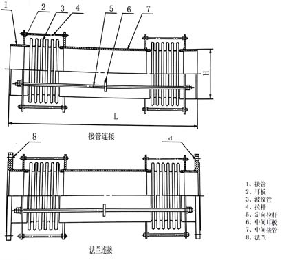 2.為了減少管架受力,可對此類膨脹節(jié)的每段波紋管在安裝前進行軸向“預(yù)變形”,用戶需要時請在合同中注明。